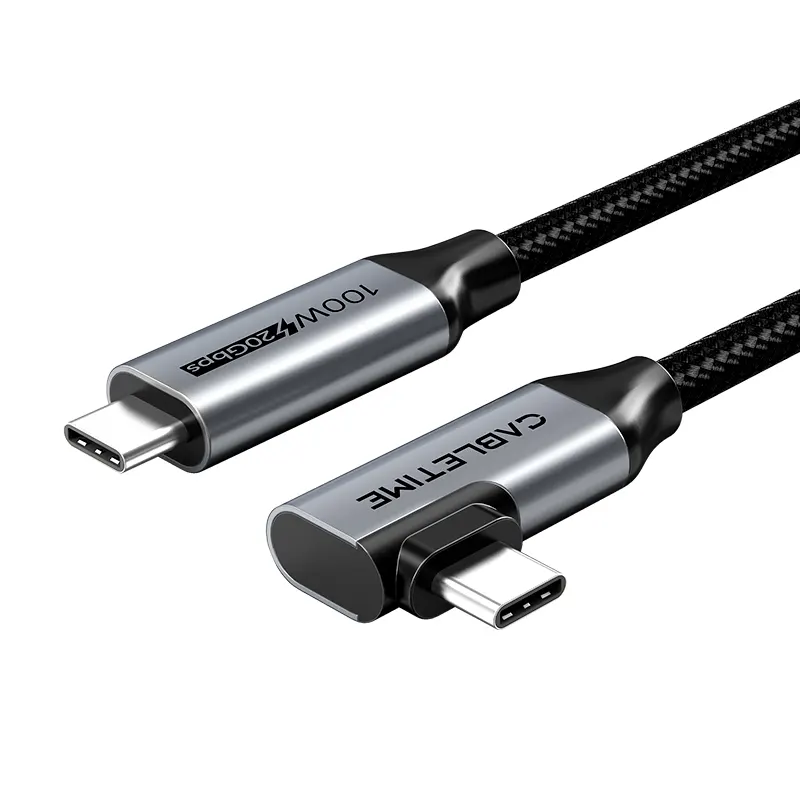 Conectores | USB Tipo-C Macho a Tipo-C Macho 90°, Niquelado |