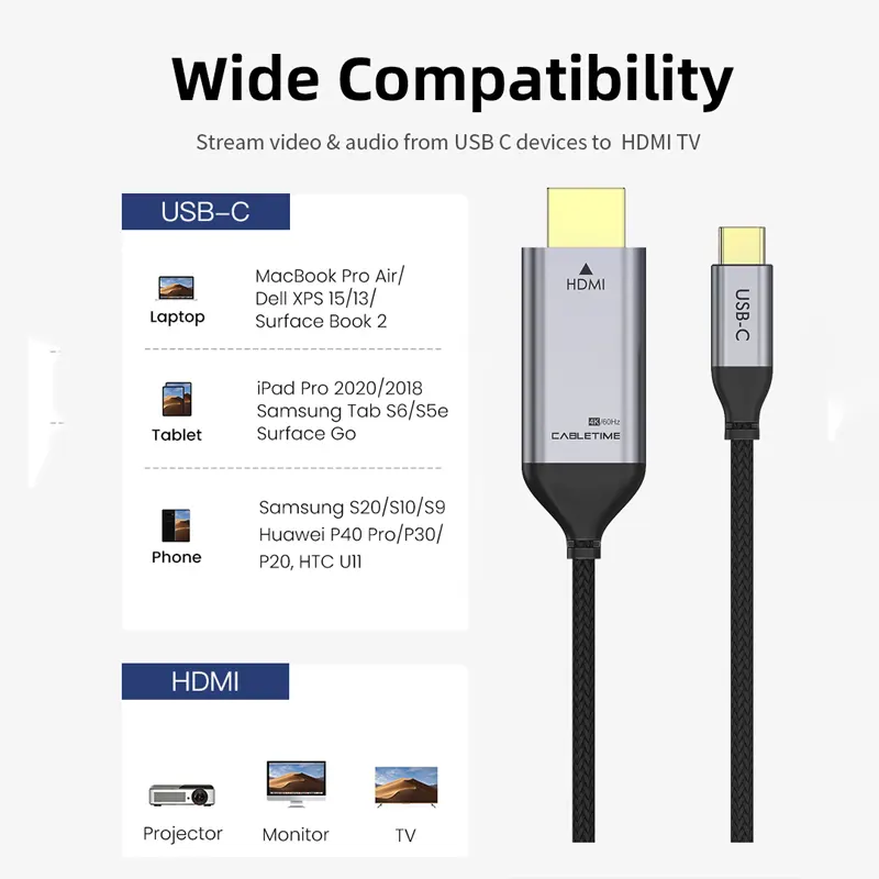 Cable USB-C 90º macho a HDMI macho 4K 60Hz - 1.8M - CABLETIME | CC11K