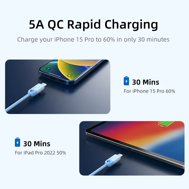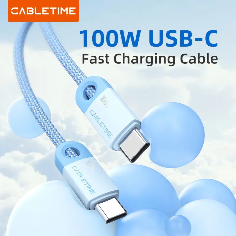 Cable USB-C Trenzado 100W de 2M (Celeste) - CABLETIME | CUP0L