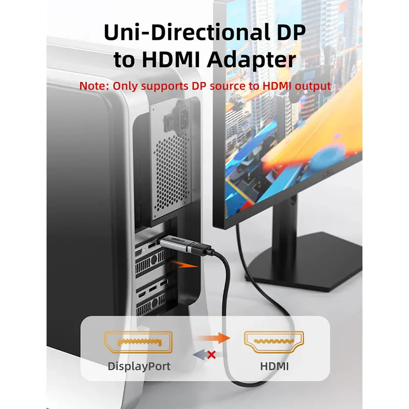 El adaptador DisplayPort a HDMI de CABLETIME ofrece una forma sencilla y fiable de conectar una computadora con DisplayPort a un monitor, televisor o proyector HDMI.
