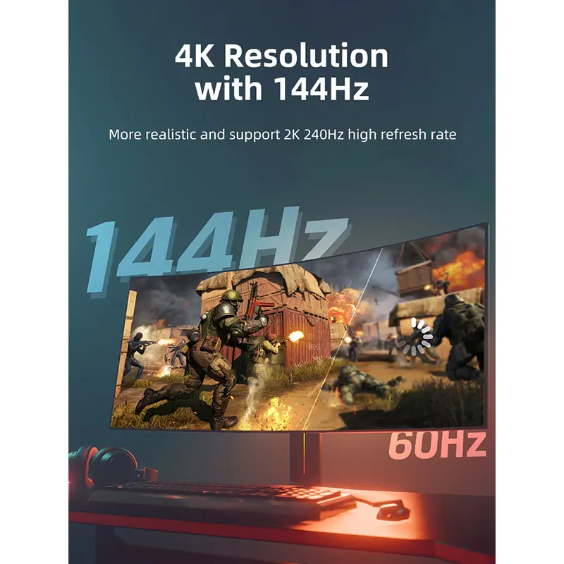 Diseñado para conectar tu portátil gaming, MacBook o iPad Pro a pantallas externas 8K UHD y 4K a 144 Hz.