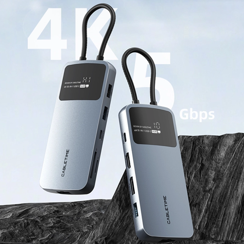 Adaptador Hub de USB-C a HDMI, Displayport, USB-A, USB-C, SD, PD, RJ-45 - CABLETIME | CB84G