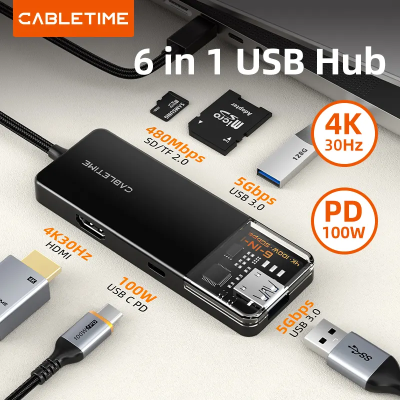 Producción | 1 HDMI 4K30 Hz, 2 USB-A 3.0 de 5 Gbps, 1 SD/TF 2.0, 1 USB-C PD de 100 W |