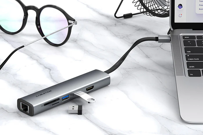 Adaptador Hub de USB-C a HDMI, USB-A, SD, TF, PD, RJ45 - CABLETIME | CB23G
